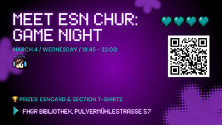 When the books close, the games begin. Join us on 4 March from 18:45–22:00 at the FHGR Library (Building A) for an exclusive ESN Game Night. Expect Jenga, Uno, board and card games, team challenges, prizes, and free snacks & drinks sponsored by Brands For Students. Curious about ESN and how to join? This is your chance.